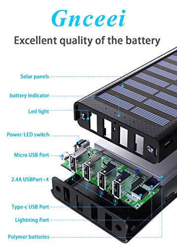 Gnceei Batería Externa 24000mAh 5.8A 4 Salidas Cargador Móvil Portátil Power Bank con 3 Entrada y 2 LED Ligero para...