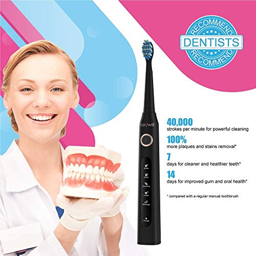 Cepillo de dientes eléctrico fairywill recargable con sonico tecnología,cepillo dental electrico impermeable fw-507 negro