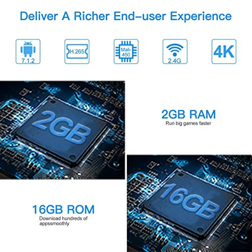 Configuración del sistema CPU: S905W Quad-core cortex-A53, frequency: 2.0G GPU: Mali-450, 5-Core GPU FLASH: 16GB eMMC SDRAM: 2GB Principales características OS: Android7.1 WIFI: 2.4GHz 3D: ...